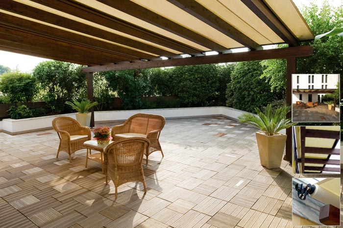Richiesta del cliente: Creazione di una zona "outdoor living" calda ed accogliente, esteticamente integrata, con funzione di protezione della terrazza.