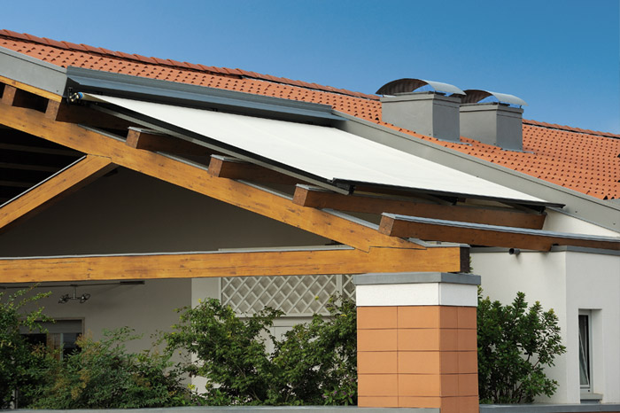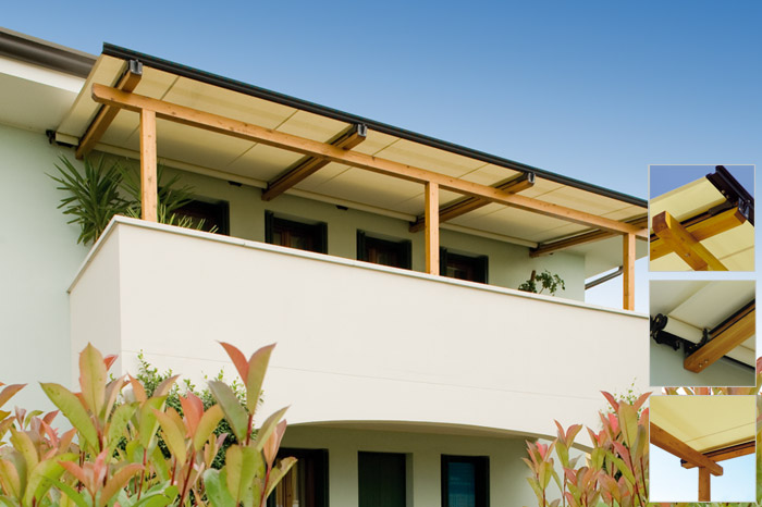 Richiesta del cliente: Creazione di una zona "outdoor living" calda ed accogliente, esteticamente integrata, con funzione di protezione della terrazza.